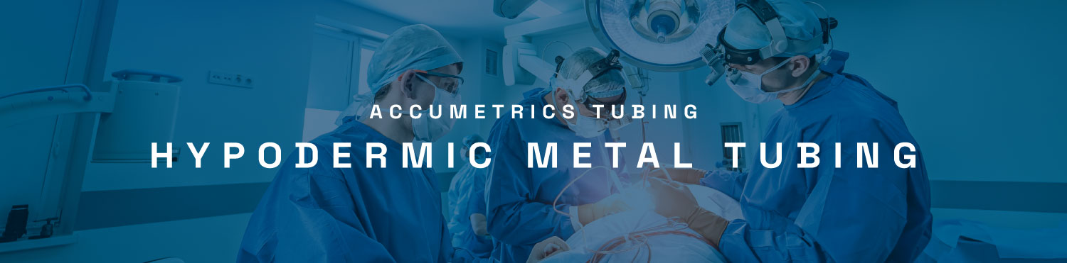 Accumetrics supplies hypodermic tubing primarily in Type 304 and Type 316/316LVM stainless steels for corrosion resistance and strength in contact with body fluids and sterilants.